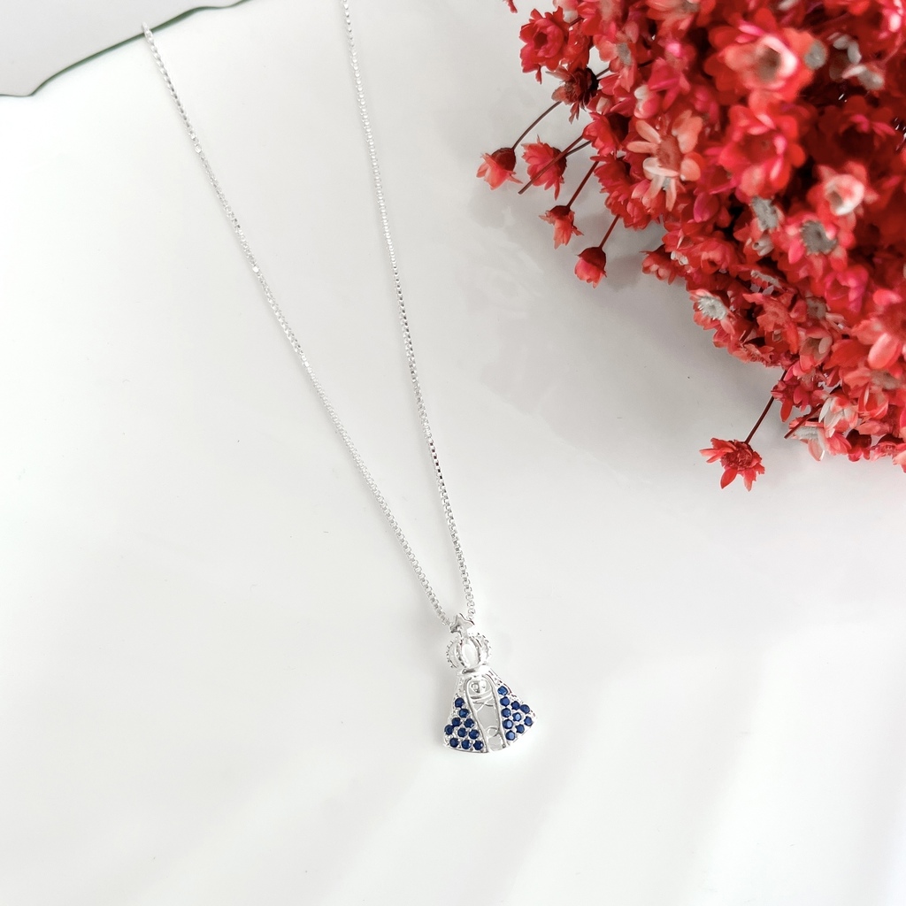 Exiba sua fé com sofisticação através do Colar de Prata Nossa Senhora Aparecida Cravejado. Esta joia foi concebida com maestria, harmonizando a sagrada imagem da padroeira do Brasil com o esplendor da prata e dos cristais cravejados.